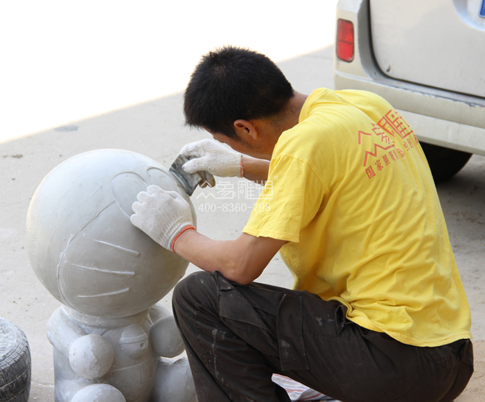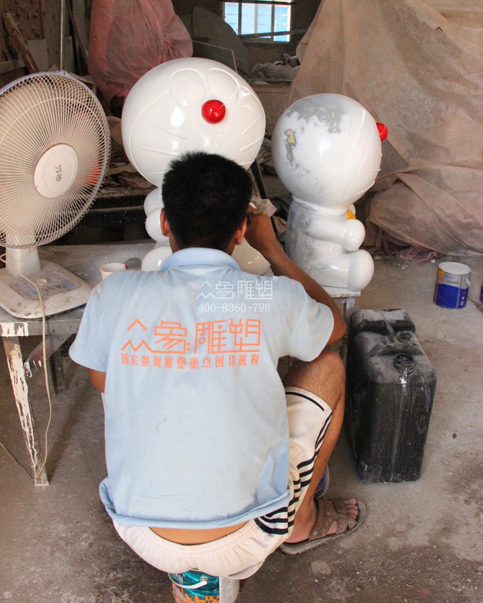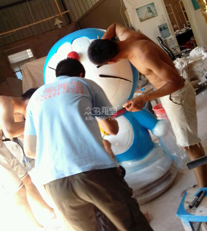 多拉A夢雕塑組合為玻璃鋼材質,數量為五個,一個大的,高度為一米三,造型為一個大的多拉A夢站在銅鑼燒上,四個小的多拉A夢雕塑尺寸分別是60公分。該雕塑組合工序嚴謹,共分為泥塑、制模、翻模、打磨、噴漆、彩繪、運輸安裝,該雕塑組合制作精美,深受客戶好評,尤其深受動漫愛好者和廣大小朋友的喜愛。