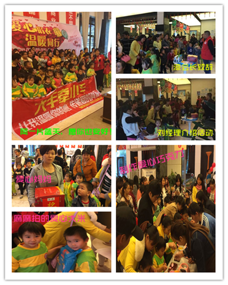 啟動儀式上,三陸康外拓經理劉春廣先生向大家宣講了此次活動意義及相關活動安排,并公布了本次捐贈目標:冬衣2000件,愛心善款1000元?,F場參加友人均表示將積極投入本次活動的捐贈、推廣中,確保目標達成。隨后,宜春市志愿者聯合會會長漆少云先生發表致辭,感謝所有參加愛心公益活動的大小朋友們,并說道:“其實愛心事業很簡單,就是把善良變成力所能及的行動,希望越來越多的人能夠加入愛心公益行動中!”接著,【三陸康】濱江壹號營銷中心捐贈了一些小禮品,大家舉行了一場激動人心的小型愛心競拍會,所有商品1元起拍。出乎意料的是,主持人明示了把所有禮品價格,但所拍金額均高于禮品本身價格,大家用獨特的方式傳播著愛心。拍賣結束后,大家在愛心墻上寫下了自己的祝福,同一片藍天下,愿你安好!最后,小朋友在家長的協助下親自制作了愛心巧克力。愛心巧克力將以5元/2顆的價格進行義賣,所賣款將用于本次捐贈衣的郵遞和貧困山區孩子的文具置購。