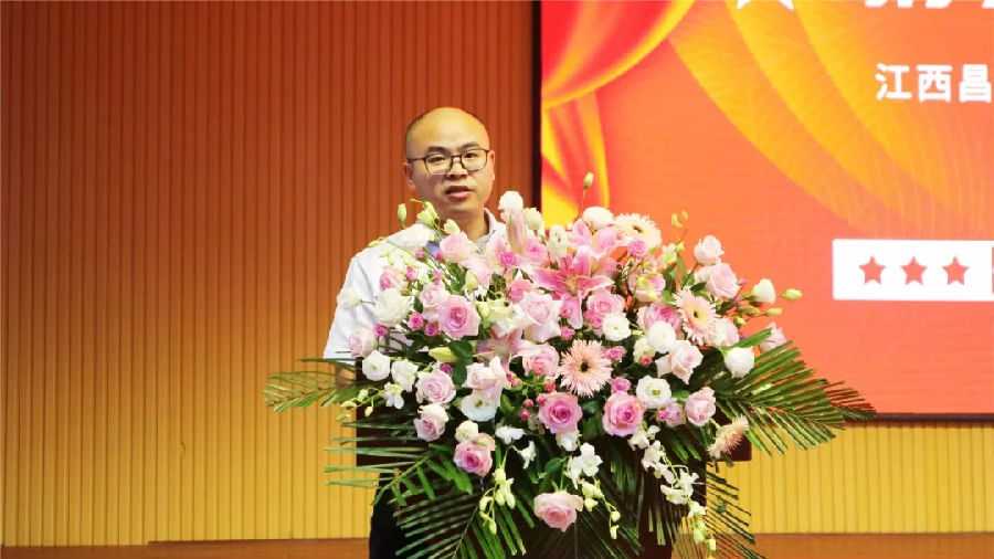 ▲宜春昌黎實驗學校優(yōu)秀教師代表何斌發(fā)言