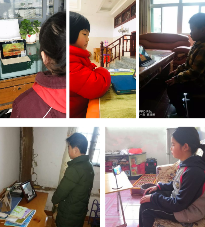 看著一個個穿戴整齊的同學(xué)們,他們胸前佩戴紅領(lǐng)巾在家面向直播中的國旗肅立,聽指揮高唱國歌,少先隊員敬隊禮。相信因為疫情開學(xué)遇到了延遲,但是我們對祖國的愛從不延遲!