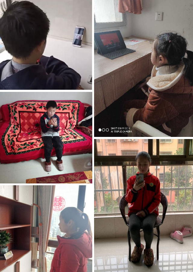 一個個穿戴整齊的同學們,他們胸前佩戴紅領巾在家中面向直播中的國旗肅立,聽指揮高唱國歌,少年隊員敬隊禮。立下凌云志,致敬逆行者,當好接班人。