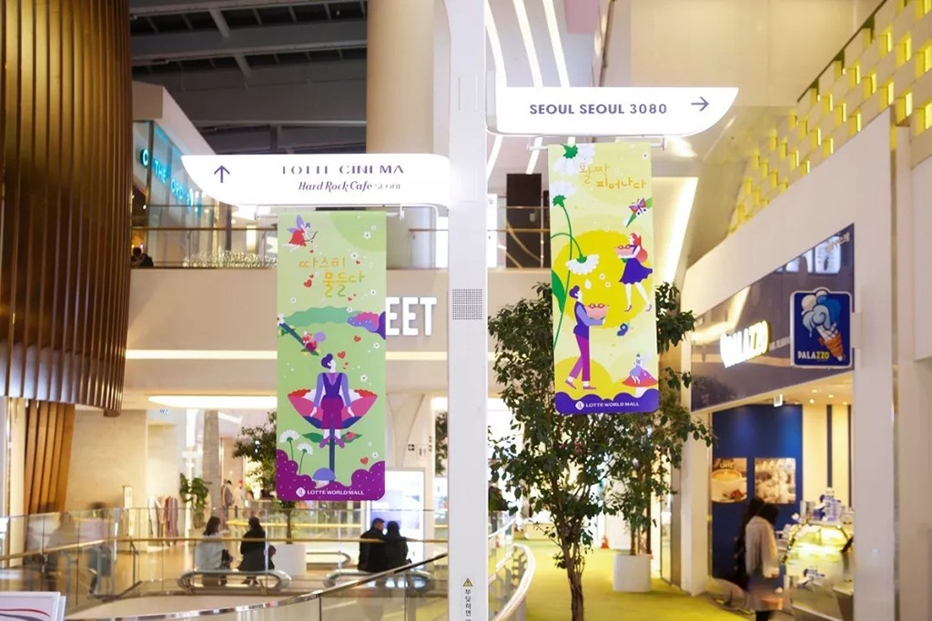 樂天購物中心夏季主視覺是由韓國的插畫家-Shinyoung 所創(chuàng)作,作品敘事性的展示,而不是來自于單一的設(shè)計背景。通過更加直觀、多元化的視覺體驗,讓大家沉浸于樂天購物中心的場景世界當(dāng)中。
