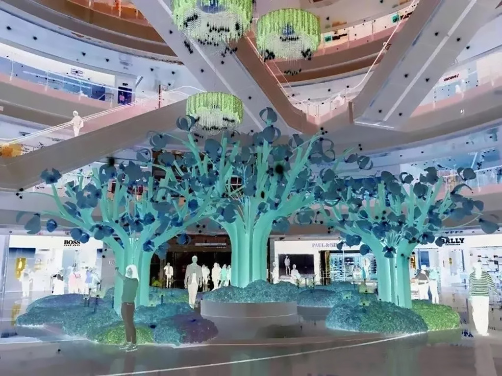 商場結(jié)合自身品牌的特色和文化,以周圍環(huán)境為主體,通過雕塑的裝飾融入企業(yè)文化和商業(yè)營銷;以顧客為中心,創(chuàng)造出良好的購物體驗。
